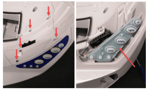 Odkręć i otwórz panel silnika, a następnie wyjmij panel z przyciskami