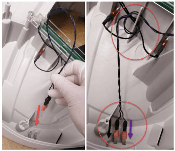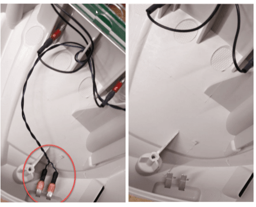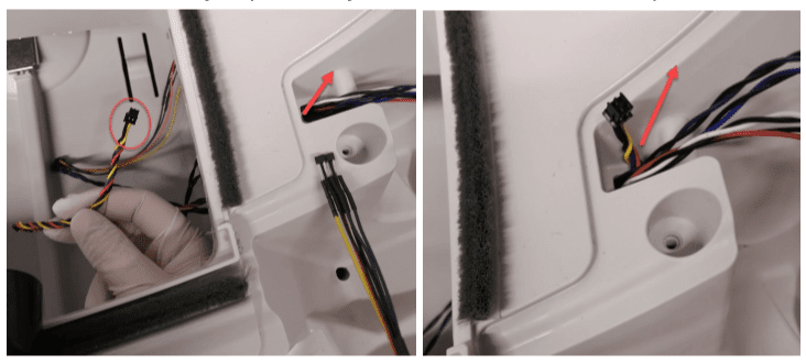 Przetnij 2 plastikowe opaski, które trzymają kable gniazda zasilania i czujnik Halla.