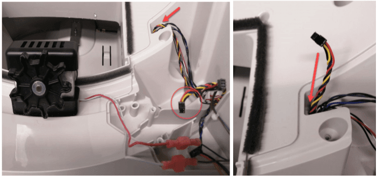 Umieść silnik z powrotem na miejscu i przymocuj kable taśmą klejącą, aby zapobiec ich utknięciu w przekładni silnika.