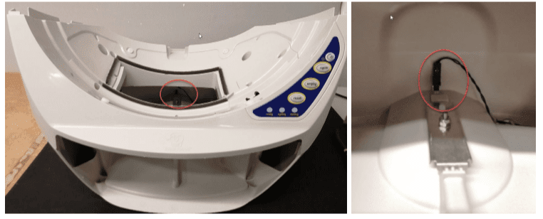 Jeśli kontrolki na panelu sterowania migają, od prawej do lewej, od lewej do prawej lub razem, problem jest nadal ten sam: robot nie był w stanie prawidłowo śledzić pozycji kopuły kuwety. To jest zadanie czujnika Halla: dzięki niemu kuweta potrafi się obrócić po wyjściu kota. Te czujniki są zaprojektowane tak, aby reagować na pole magnetyczne. Gdy kopuła obraca się, magnesy wewnątrz kuli uruchamiają czujnik Halla, umożliwiając określenie dokładnej pozycji kuli