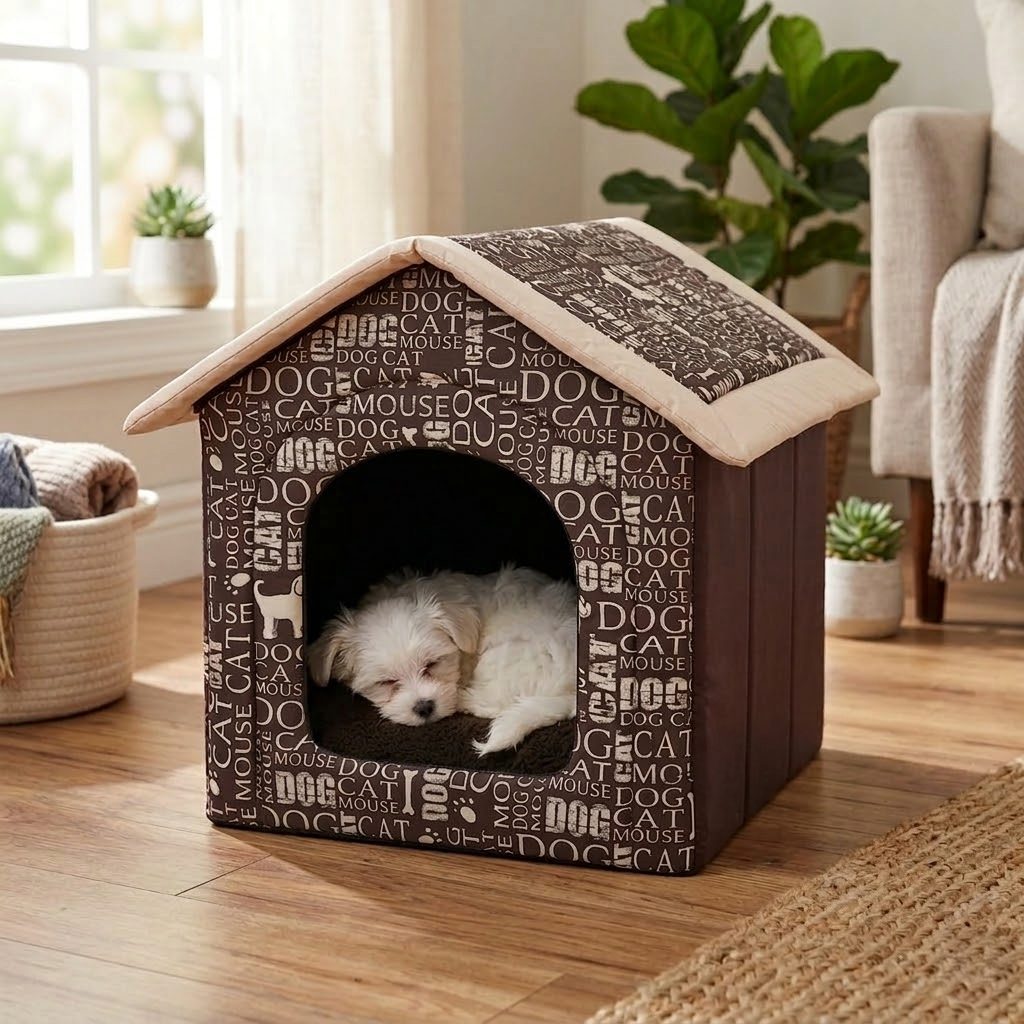 Legowisko dla psa w kształcie budy. Mocne przeszycie zapewniają niezmienny kształt podczas użytkowania. Estetyczne wykonanie. Materiał odporny na zadrapania. Możliwość wyprania dzięki zdejmowanemu pokrowcu.