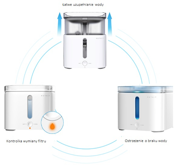 - Wysokiej jakości materiały i świeży design – dozownik wody Petkit Eversweet stanie się eleganckim wyposażaniem wnętrza, dodatek, który idealnie wpisze się w róznego rodzaju wnętrza.